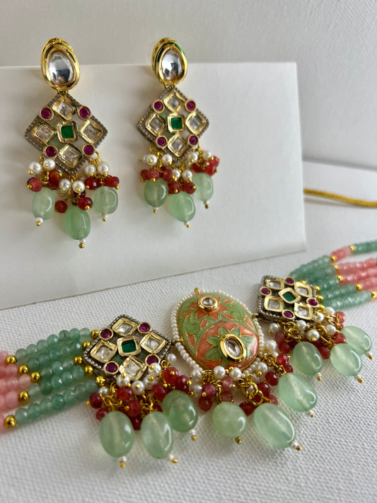 Sage Blossom Meenakari Jewelry Set