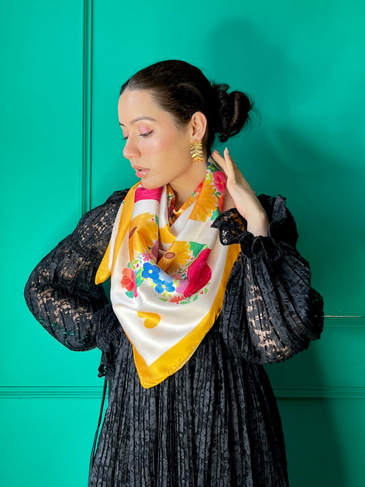 Floral Heart Elegance Satin Scarf
