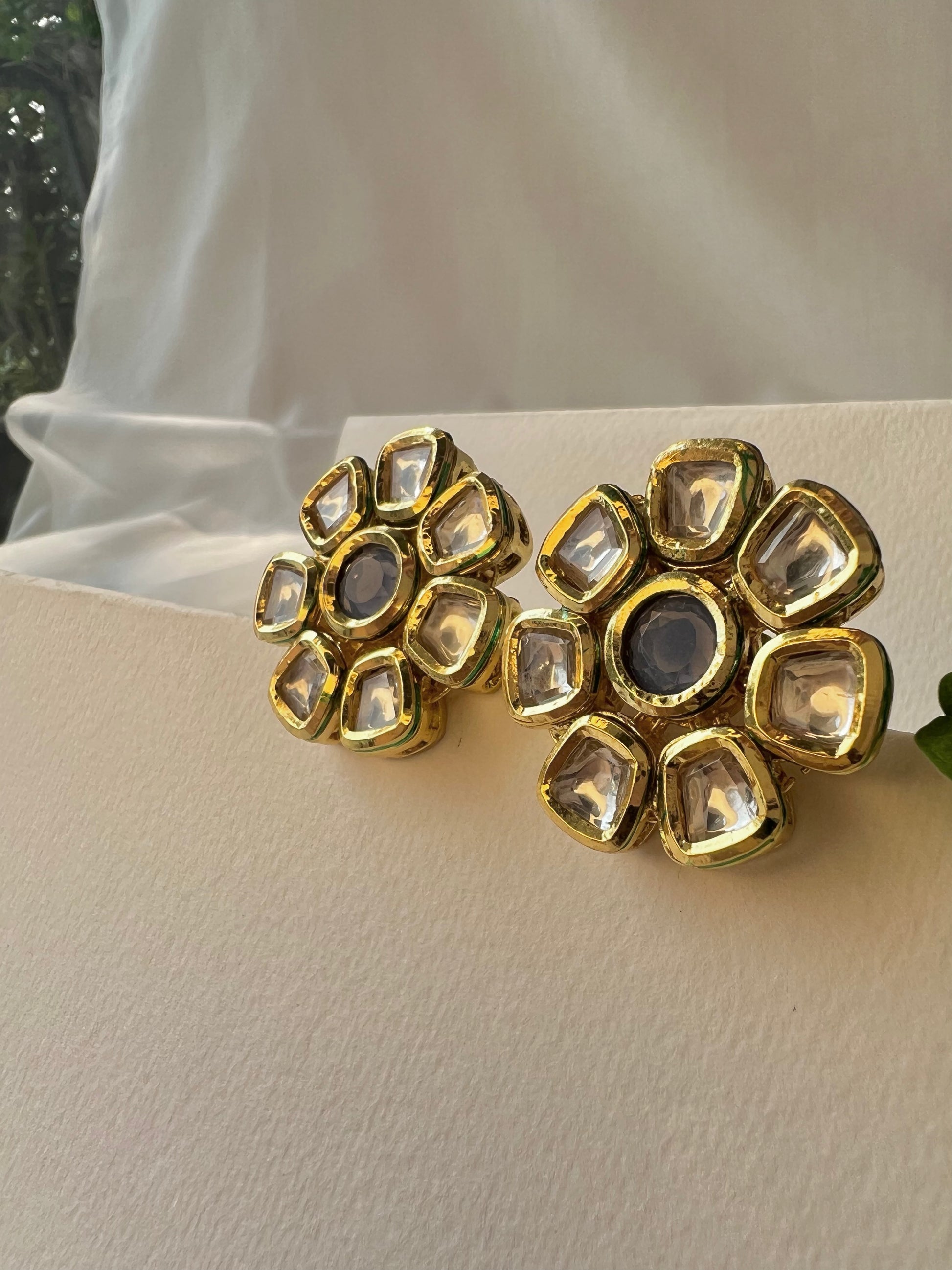 Celebrate the artistry of Indian craftsmanship with our Gilded Floral Elegance Earrings. These petite earrings showcase a delicate flower motif, beautifully crafted from brass and finished in a rich golden hue. Each petal is adorned with shimmering stones, creating a radiant interplay of light and texture. The intricate design captures the essence of nature’s beauty, while the golden brass lends a timeless appeal. Perfect for adding a touch of refined elegance to any ensemble, the Gilded Floral Elegance Earrings are a sophisticated statement of your style and cultural heritage.