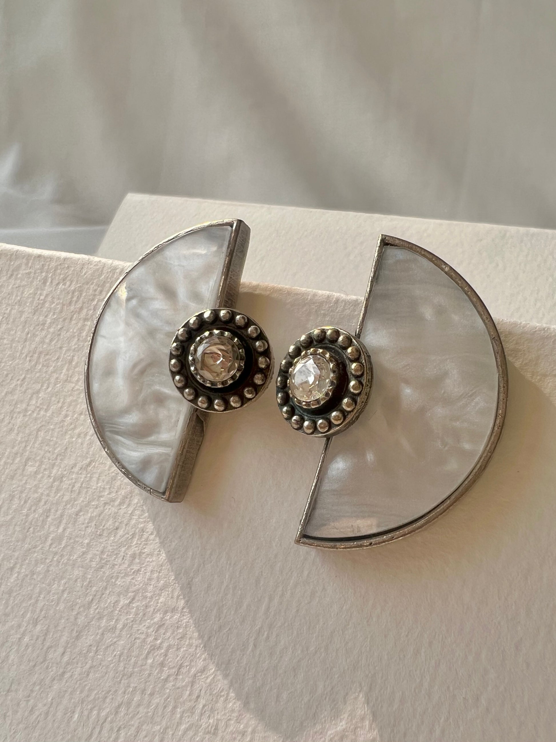 Discover the understated elegance of our Luna Pearl Crescent Earrings, a refined blend of classic design and modern sophistication. These earrings feature a semi-circular mother of pearl stone, its iridescent surface capturing and reflecting light with a soft, captivating glow. The oxidized finish adds a touch of vintage charm, creating a striking contrast that enhances the natural beauty of the pearl. Designed for those who appreciate subtle yet impactful style, the Luna Pearl Crescent Earrings are a versatile addition to any jewelry collection, perfect for both everyday wear and special occasions.