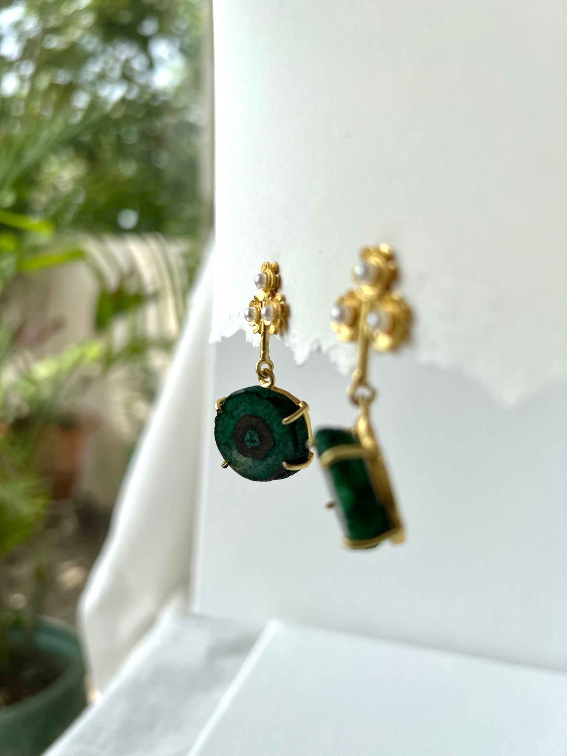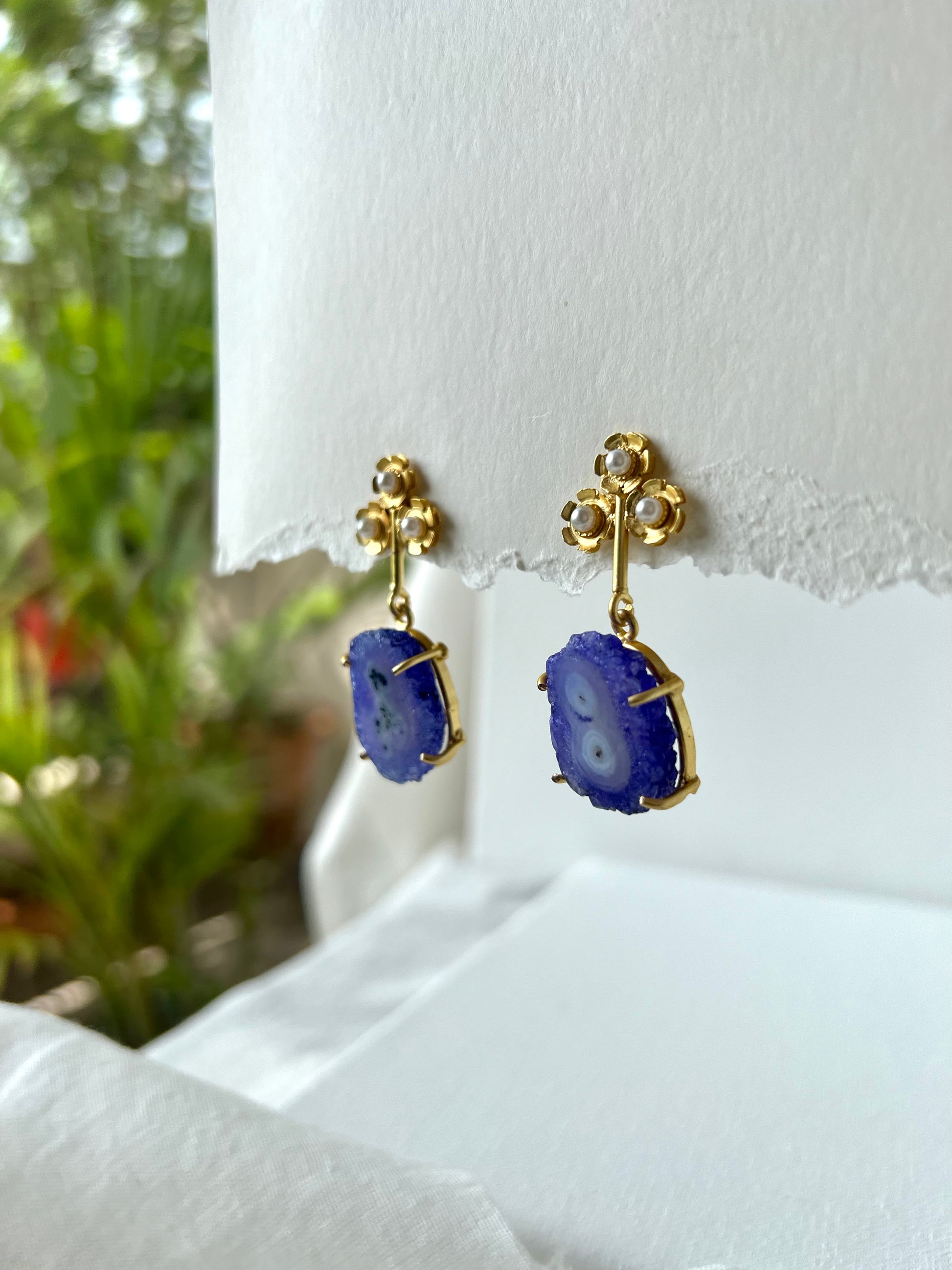 Celebrate in style with the Opulent Blossom Earrings, a pair of handcrafted festive statement earrings designed to dazzle. Fashioned from brass and luxuriously plated in 18K gold, these earrings feature delicate pearl-studded floral motifs at the top, gracefully descending to a vibrant agate stone that anchors the design. The perfect blend of intricate detail and bold color, these earrings are made for those who desire elegance with a touch of festivity. Whether for a special occasion or to elevate your evening attire, the Opulent Blossom Earrings bring an artful, radiant charm to any celebration.