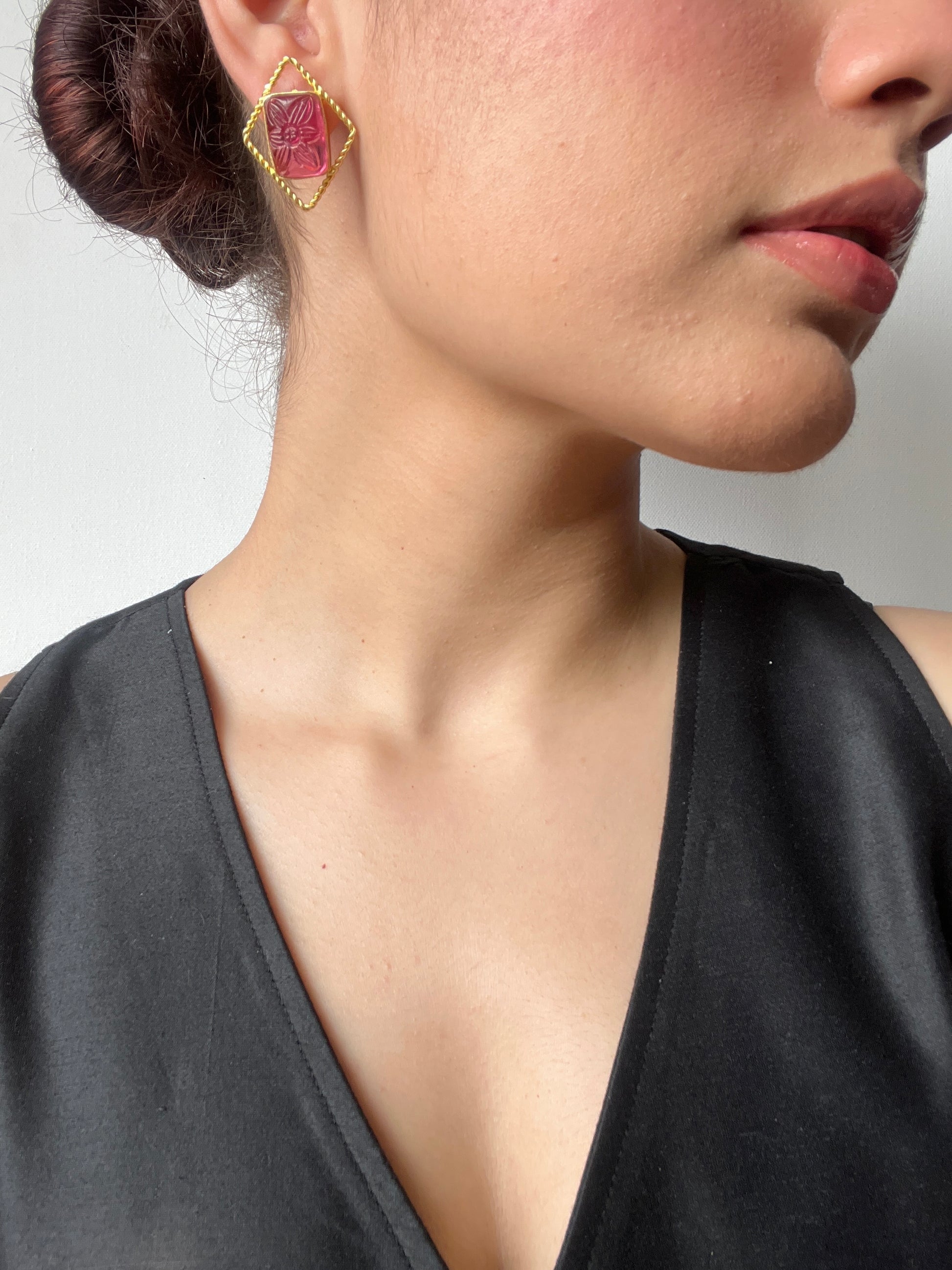 Discover the timeless allure of the "Vintage Imprint Studs," a pair of exquisitely minimal earrings that blend classic elegance with a touch of nostalgic charm. These handcrafted studs feature an intricately engraved semi-precious stone, set in brass and plated with 18k gold, evoking a vintage aesthetic that resonates with sophistication. The detailed engraving on the stone adds depth and character, while the warm golden setting enhances the earrings' antique-inspired appeal. Perfect for those who appreciate understated elegance with a hint of history, the "Vintage Imprint Studs" are a versatile accessory that brings a refined and timeless quality to any ensemble. Ideal for adding a subtle yet distinctive touch of vintage glamour to your everyday look.
